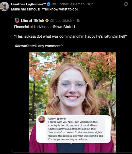 Unfortunately there is a large segment of leftists that are vile, brainwashed and just straight out dangerous & think someone being murdered for their beliefs is appropriate and quite-frankly these people are not fit for society. We are going to do our best to put as many of them on display as possible so the world knows who they are and who to turn away when they come looking for a job. There is also a few awesome posts mixed in.