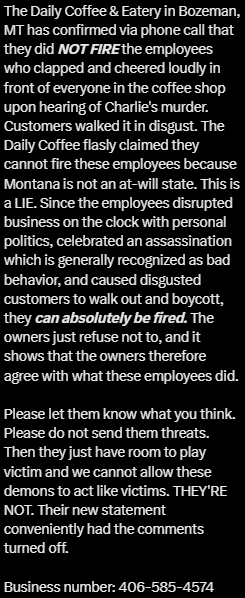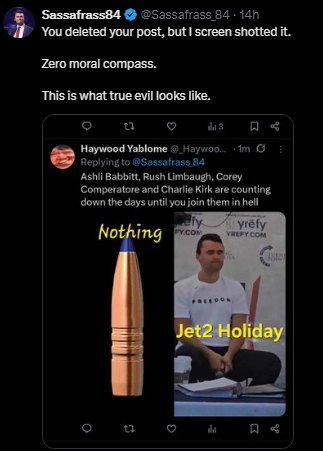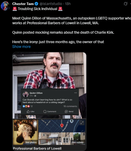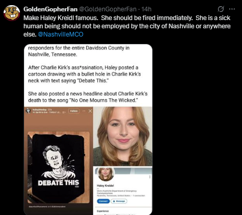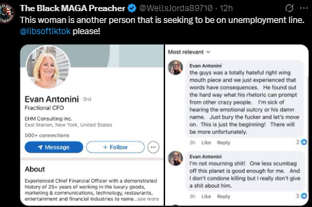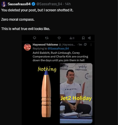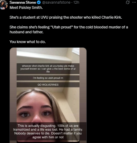Unfortunately there is a large segment of leftists that are vile, brainwashed and just straight out dangerous & think someone being murdered for their beliefs is appropriate and quite-frankly these people are not fit for society. We are going to do our best to put as many of them on display as possible so the world knows who they are and who to turn away when they come looking for a job. There is also a few awesome posts mixed in.