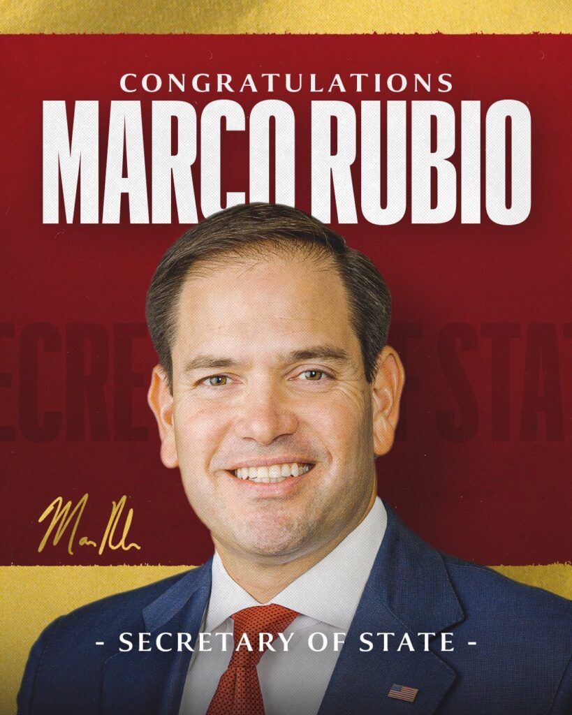 Congratulations to our new Secretary of State Marco Rubio! pic.twitter.com/Xgp1Jk0LCg