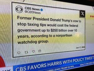 1st X Post (June 17th 2024) – CBS News When Donald J. Trump invented no tax on tips… CBS had to find a way to criticize it.